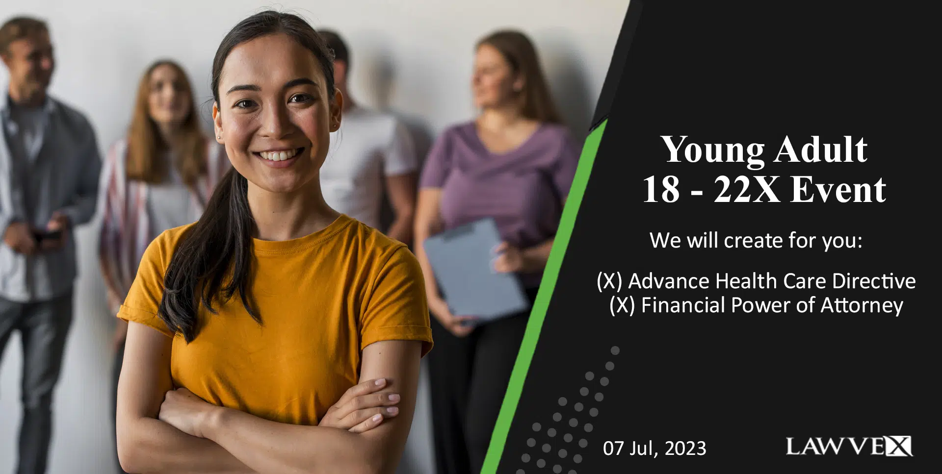 Because this story is all too common, and one of our values at Lawvex is to educate our clients and the community, we are inviting you to attend 1822x – a back to school event for 18 to 22 year olds to check the box and get this done. Our young adult neighbors in the Fresno Clovis Madera and Solvang communities will receive their own legal: